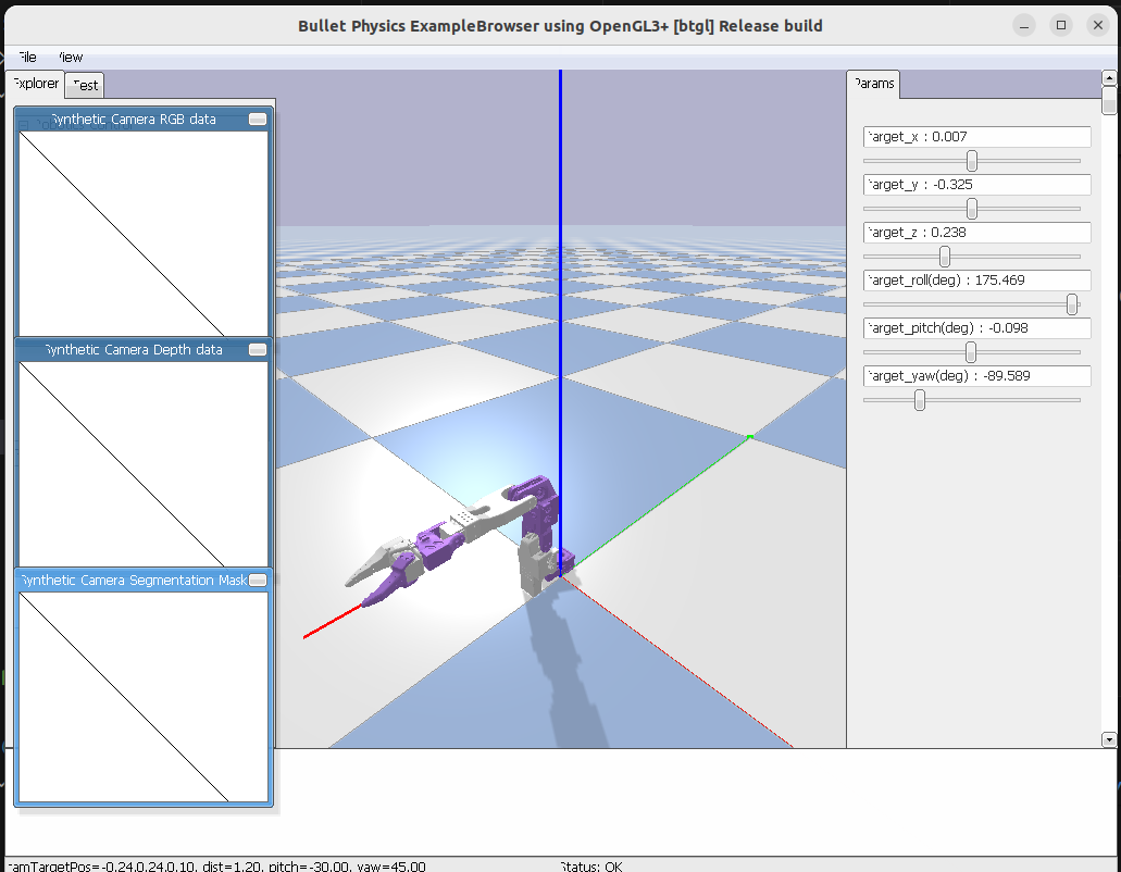 To visualize the robot arm posture, use the PyBullet simulation: